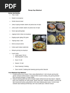 There are sup (soup) matahari, sup galantin, sup manten, stoop macaroni, selat, and timlo sup matahari. Consulta 4.385 fotos y videos de vien's selat segar & sup matahari tomados por miembros de tripadvisor.